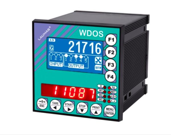 Indicatore di peso in contenitore a norme DIN, dimensioni 96 x 96 x 130 mm. Grado di protezione del frontale IP54. Tastiera 10 tasti a membrana. 8 LED di segnalazione. Orologio/calendario.